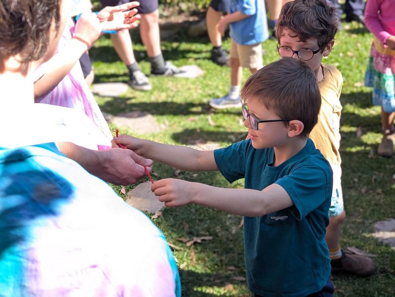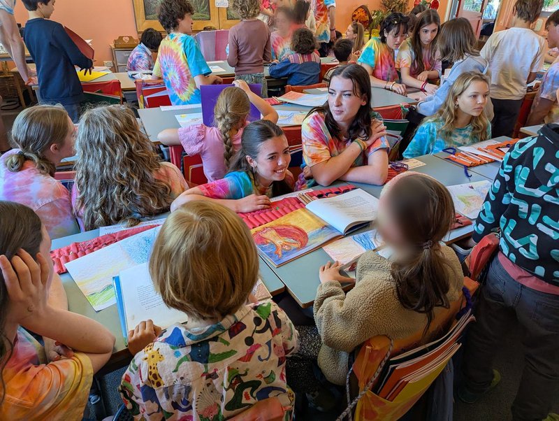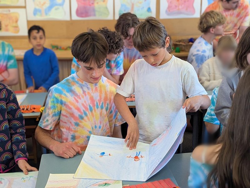 Starting in Kindy, Year 12 was treated to a beautiful song and given lovely finger-knitted bracelets that the children had made. They then journeyed to Class 1, where they joined in Morning Circle with maths games, movement and songs - harder than you might think! They continued on to Class 2 where they buddied up to look through the workbooks, drawings and craft projects that the students have been working on. Our youngest students then bid farewell to our oldest, who stopped for a customary Class of 2025 photo in the sandpit before continuing on to Middle Cove for the day.