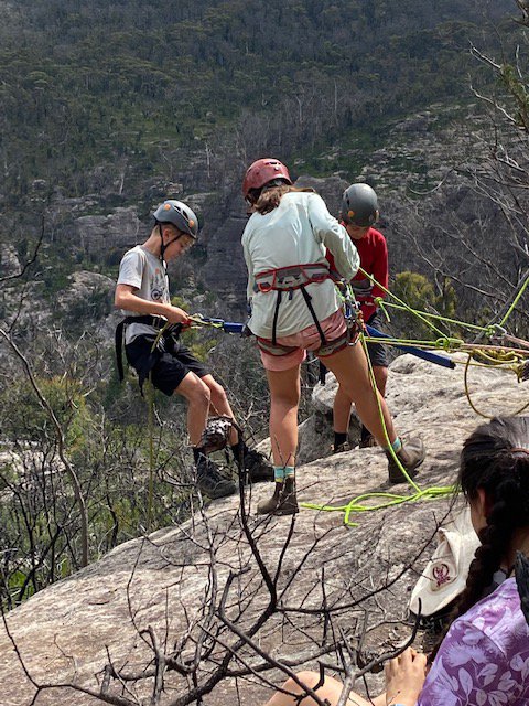 The abseilers were both excited and nervous. They participated in a small practice run, patiently guided by Greg, Enya, Scottie, Jason and KG. This provided students with the skills and confidence to attempt the daunting, 20 metre drop. Exhilaration and an overwhelming feeling of pride and triumph accompanied each abseiler’s return to the cliff top.