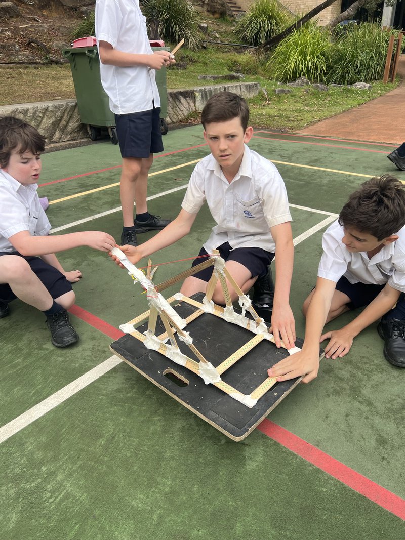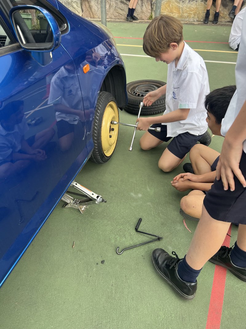 Yr 7 Mechanics Main Lesson covers simple machines and involves a world of experimental, hands-on learning. Lever, pullies, wheels, incline plane and wedge are ‘The Mighty Five’ simple machines explored. The students enjoyed an exciting catapult competition and to round out the lesson, students put real world skills to the test by changing a tyre from their teachers cars.