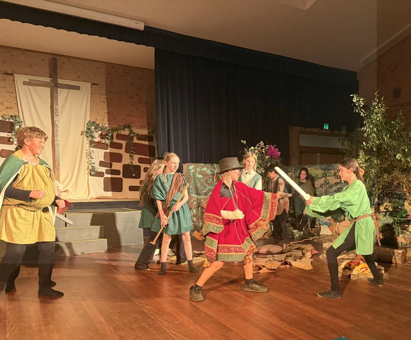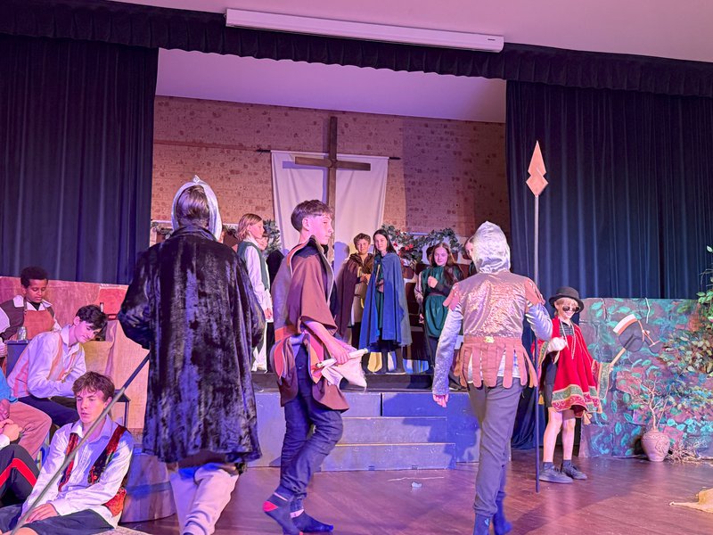Our Year 7 students performed their play Robin Hood, on Tuesday, 12 August in the Sylvia Brose Hall. The whole cohort were involved in the play and performed to various classes throughout the day and to Parents and Carers in the evening. Students had been rehearsing diligently to keep up with a very intense production schedule. They all put in an extraordinary effort to deliver such a performance. Robin Hood was selected to reflect the fun and adventure of the time period as part of their Medieval Main Lesson. Each student had a speaking part and the story was told from the perspective of Maid Marian. Students also were able to learn and flex their skills in prompting, stage timings and set creation. Thank you to all our students, teachers - Elena, Angel and Emma, staff and parent volunteers who helped to make the play a roaring success.