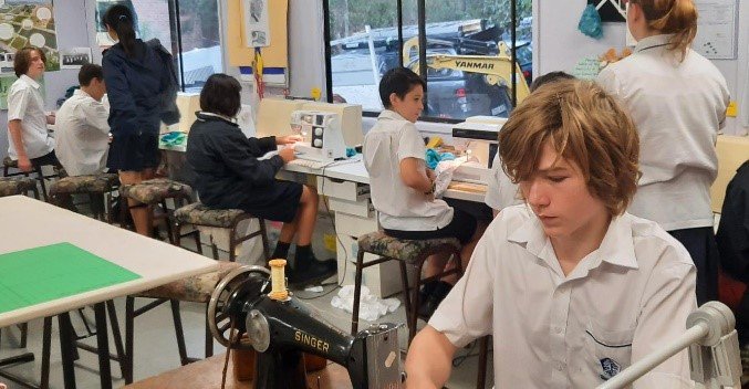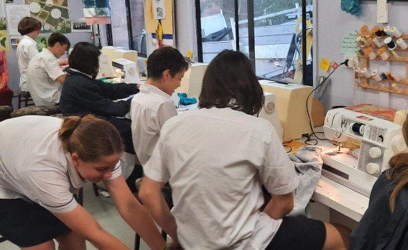 The students have been machine stitching their own shorts as well as hand stitching designs on cotton fabric and then dyed with natural Indigo. Later they will turn the indigo pieces into beeswax wraps. They used different techniques such as felting and weaving to experience how fibres are manipulated to make varieties of cloth.