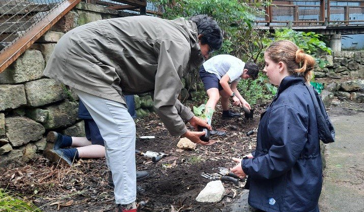 Here in the photos you can see the Year 8 students working in the textile room and outside in the garden planting three varieties of native plants that hopefully will grow and be used for eco printing and Indigo dyeing in the future.