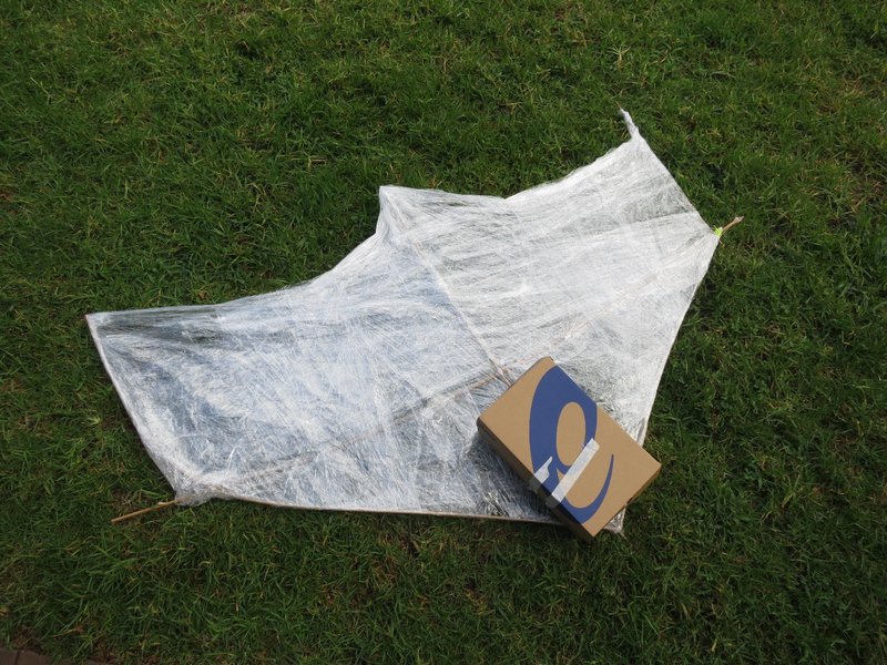 As you might expect, the shoe box is not very aerodynamic. Initial test flights resulted in a “flight” of about 2m from a launch height of 2m. A glide slope ratio of 1:1.