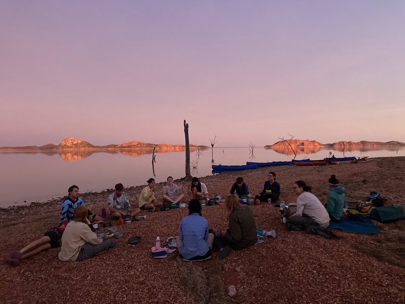 This year, Yr 11 students woke daily to the stunning sunrise over Western Australia’s Lake Argyle. We spent a stunning eight days watching every sun rise, and set, while journeying around the north western quarter of the lake powered only by our own bodies inside of our own canoes. Numerous starlit paddles across the still but gigantic dam, which had an abnormally high level for this time of year, providing fantastic access to beautiful beaches and grassy flats to stay under the shade of broad leaves trees. The bird life of the lake was exploding with the previous wet season finished, and we were treated to a full eleven day trip without so much as a drop of rain. Exploring gullies less traveled occasionally even resulted in a beautiful secluded pool of water, deep enough to swim in, surround by cycads and other broad leaved shade loving plant life. The final sunrise of their trip across the stunning lake will hopefully be an experience students do not soon forget.