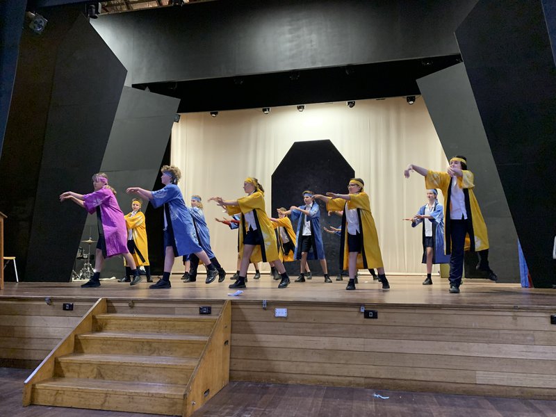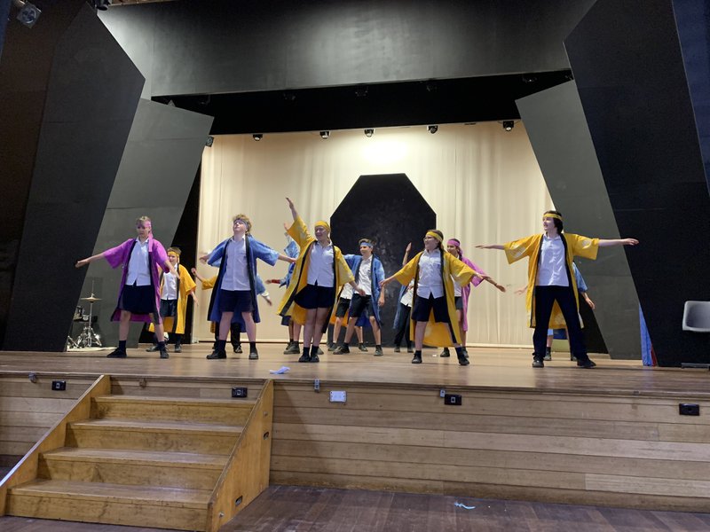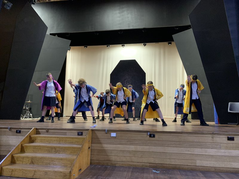 Yr 8 Japanese students performed a Japanese folk dance called "Soranbushi". It is a fisherman's working song using many movements that represent ocean waves, fishermen pulling in the nets, throwing fish or buckets, and rowing their boats. The words "dokkoisho, dokkoisho", "so ran, so ran" are sung during the dance. The words are used to encourage the fishermen to work harder. The Sylvia Brose Hall erupted in applause and the dance was thoroughly enjoyed by both the audience and performers. Thank you Yr 8 and to Japanese Teacher, Keiko Takahashi for bringing this meaningful performance to Glenaeon!