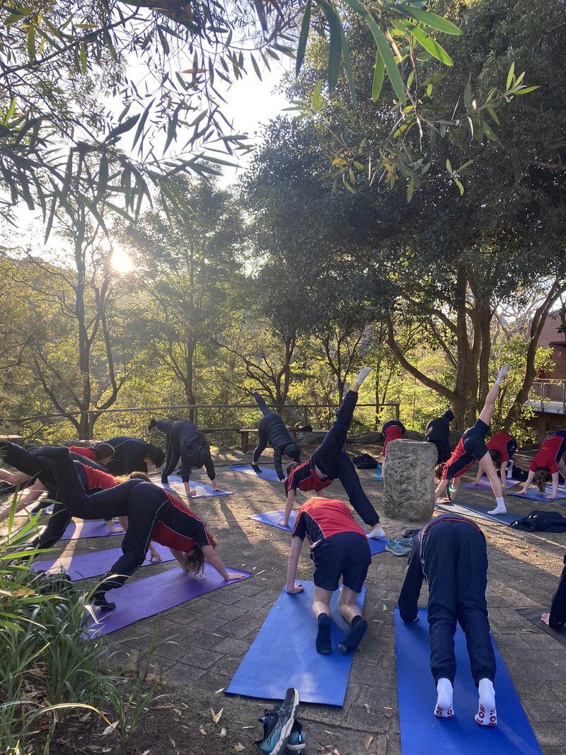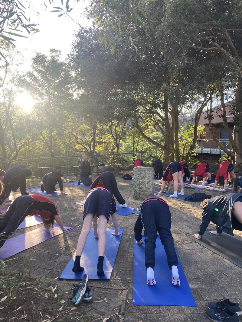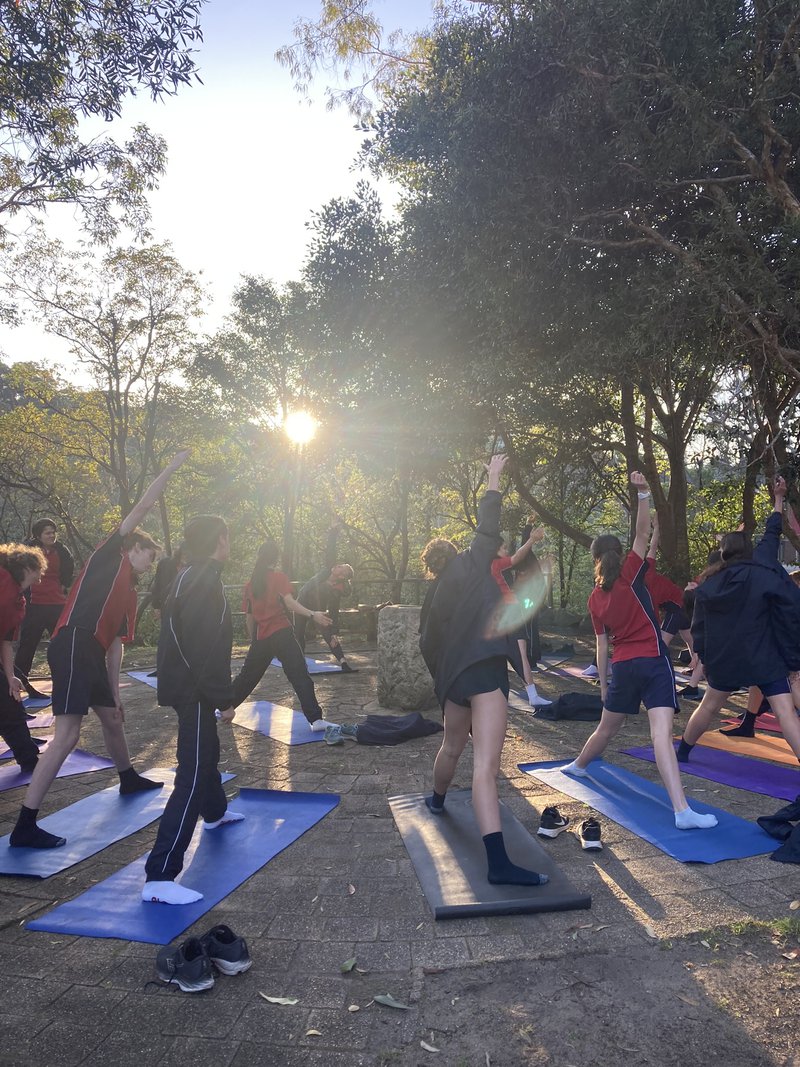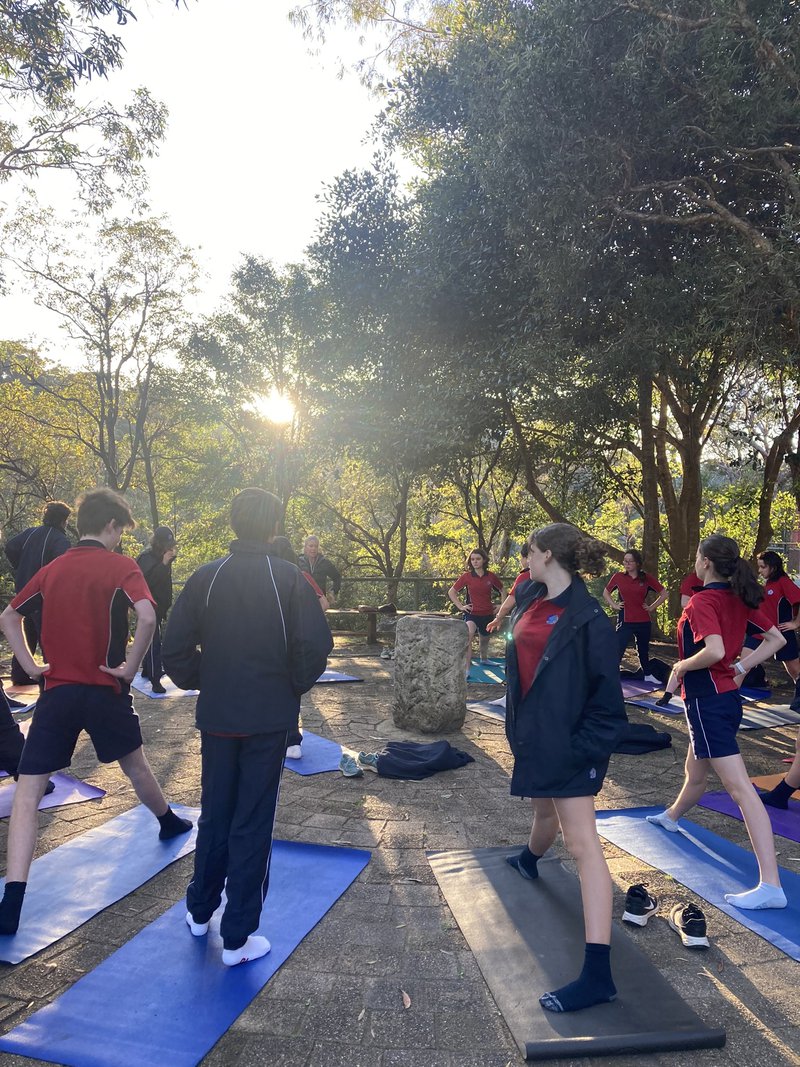 After that, we split into groups and rotated between morning sun rays yoga and a bush run to the nearby large cave and beyond the banks of Scots Creek. In only a few weeks, the Yr 9 cohort will be canoeing down this creek into Fig Tree Bay to learn about canoeing and paddling skills before setting off on their Shoalhaven River and Art camp early in term 4.