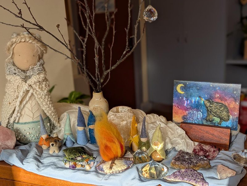 Our nature tables change with the seasons as we move through the patterns of changing light, weather, plants and flowers. Mother Earth is looking after her little gnomes making warm cosy places to sit around the fire. Icy crystals hang and the banksias make the most beautiful candle trees with their lanterns on fire. Class 1 made beautiful echidnas reflecting the current season from the D'harawal indigenous calendar, Tugarah tuli as part of their indigenous stories literacy Main Lesson with Class Teacher Katherine Arconati.