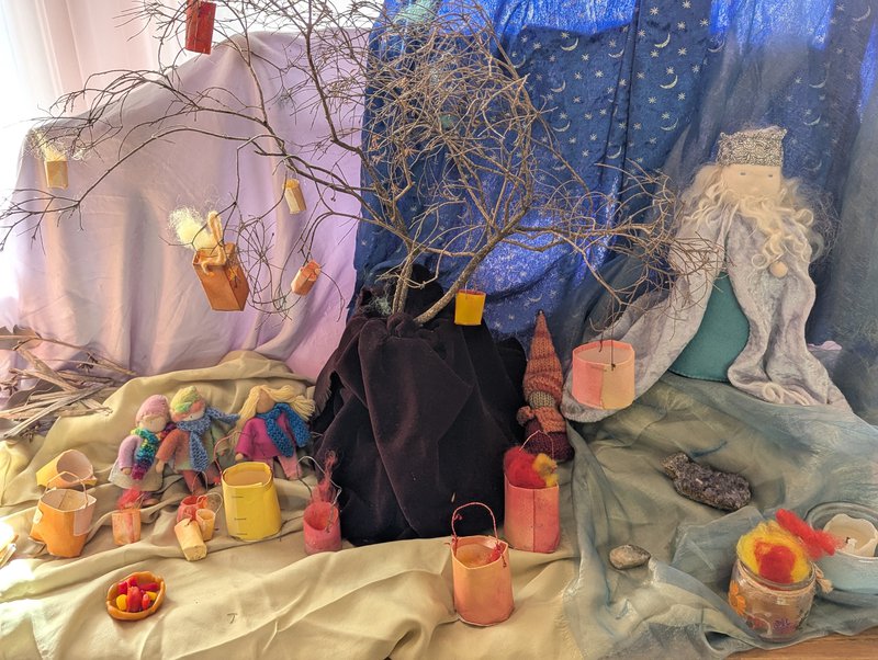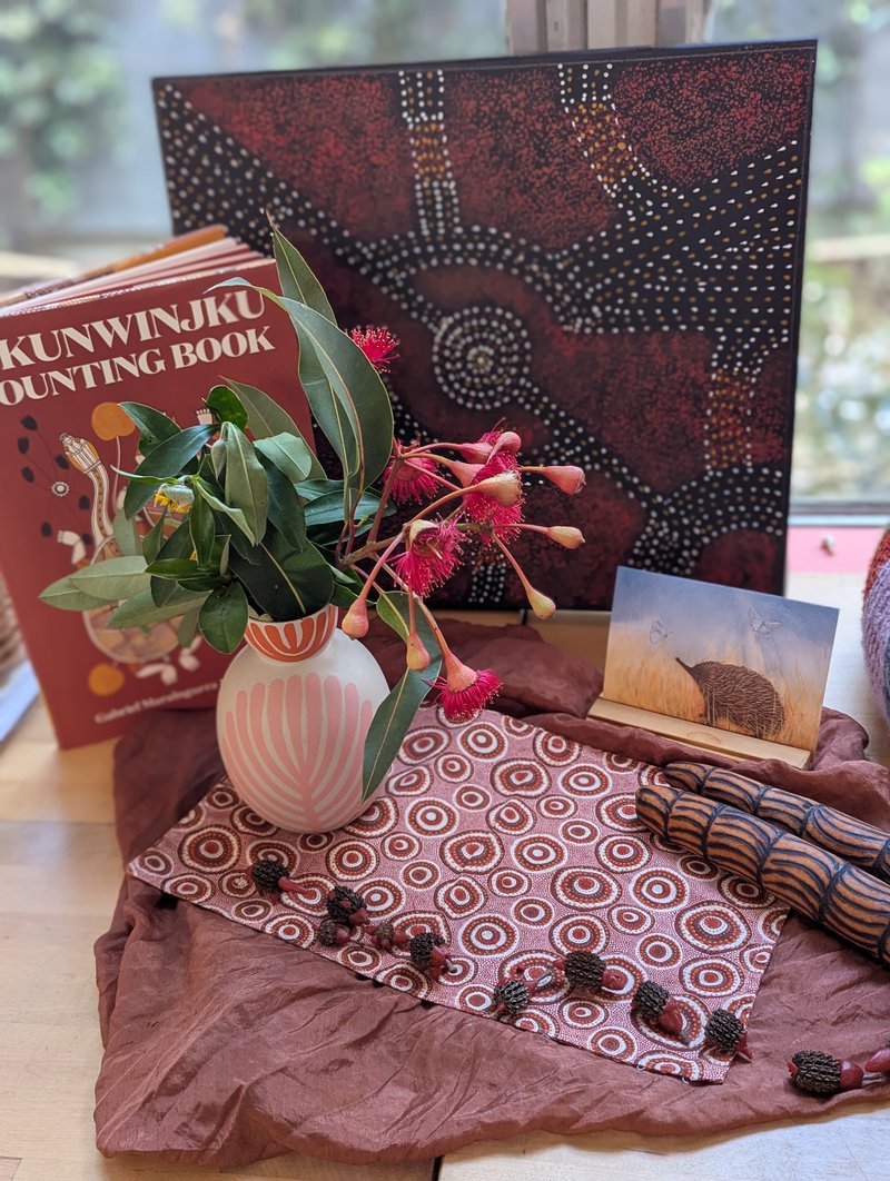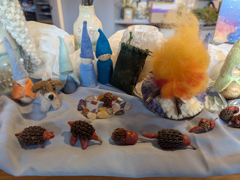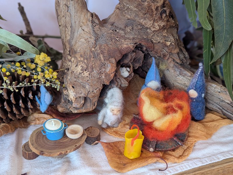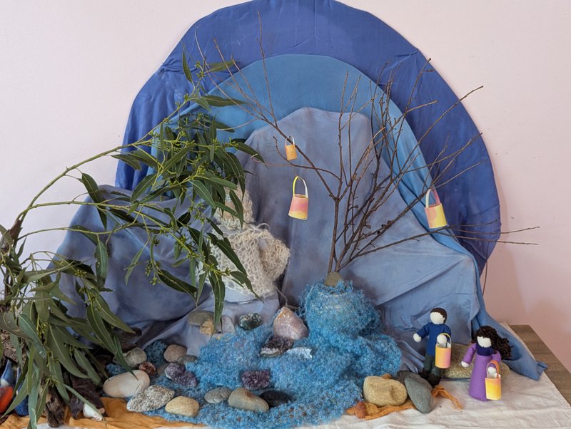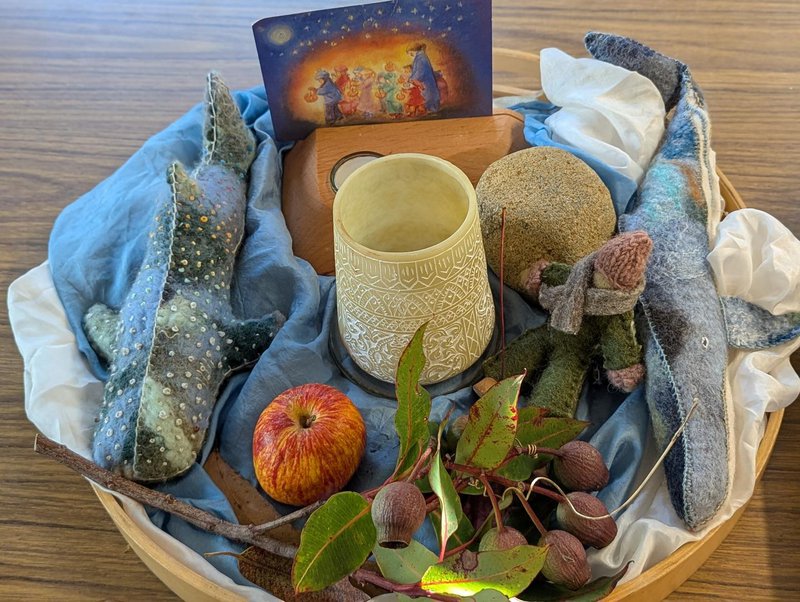 The focus is often seasonal and there is also a theme that follows the indigenous D'harawal seasons. We are in the time of Tugarah Tuli, the cold months, with the flowering of Burringoa, the echidnas gathering, whales passing Sydney and the gathering of nectar by the animals. These seasons are incorporated into the stories for the children, the nature tables, and the toys that they enjoy.