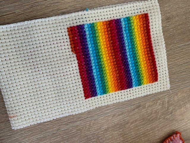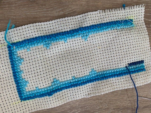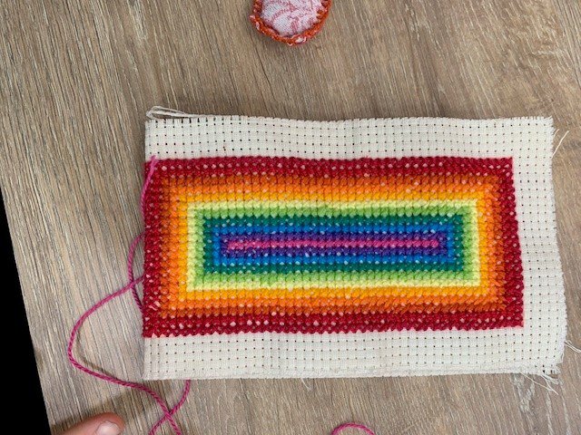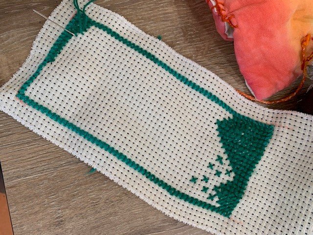 • I am enjoying making my fountain pen case. I am joining dark to light so the dark bit stands out. I can’t wait till I get my fountain pen.